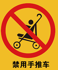 自動(dòng)扶梯出入口附近有“禁用手推車”的安全警示標(biāo)識。